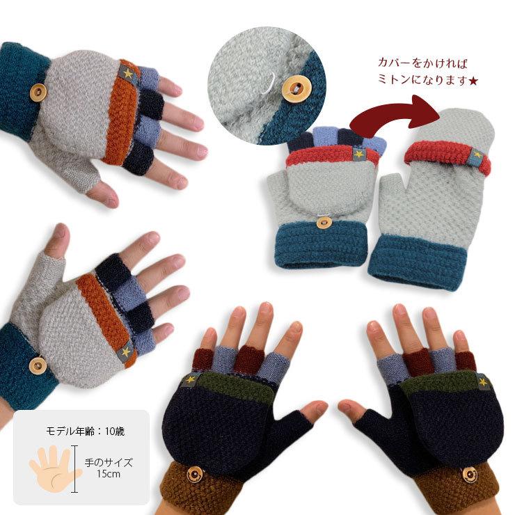 手袋 キッズ 男 指なし 指切り 2way カバー付き ミトン グローブ おしゃれ 男の子 子供 子ども用 小学生 ジュニア 暖かい 6才 7才 8才 9才 10才 11才 伸びる B エルムンド 通販 Yahoo ショッピング